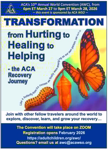 Prepare to experience an unforgettable ACA Convention filled with fun and interactive workshops designed to support you in your ACA Recovery Journey. Whether you're just beginning, or deep into your healing work, this Convention offers a safe and transformative space to learn, grow, and connect.